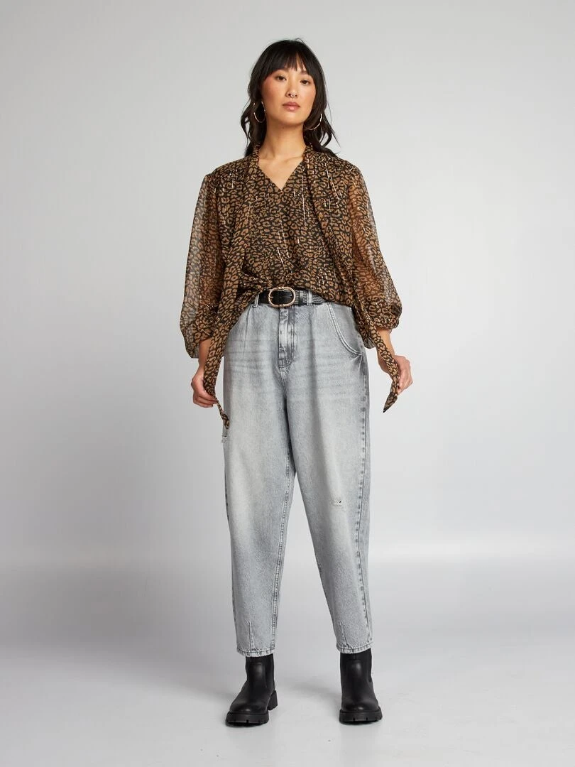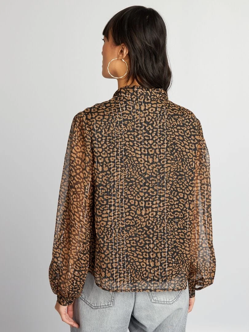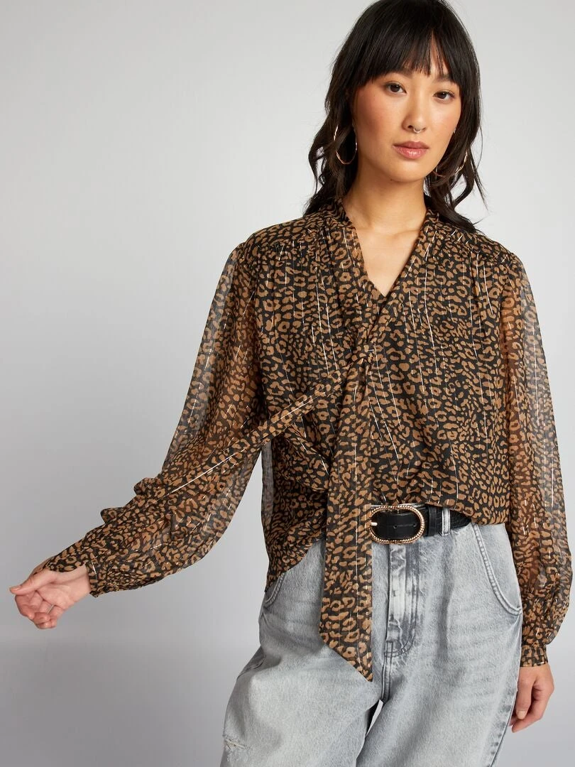 Una blusa con fili brillanti e nastri da annodare al colletto!