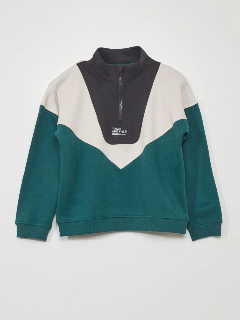 Felpa Color Block A Collo Alto Con Zip