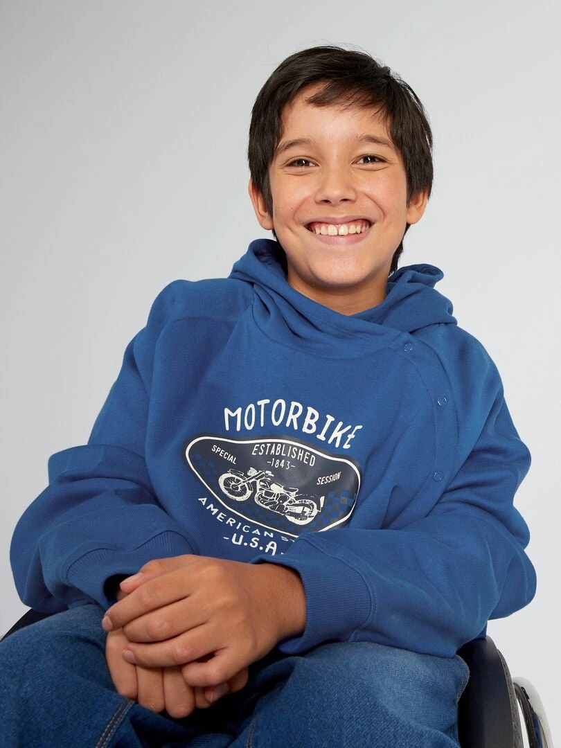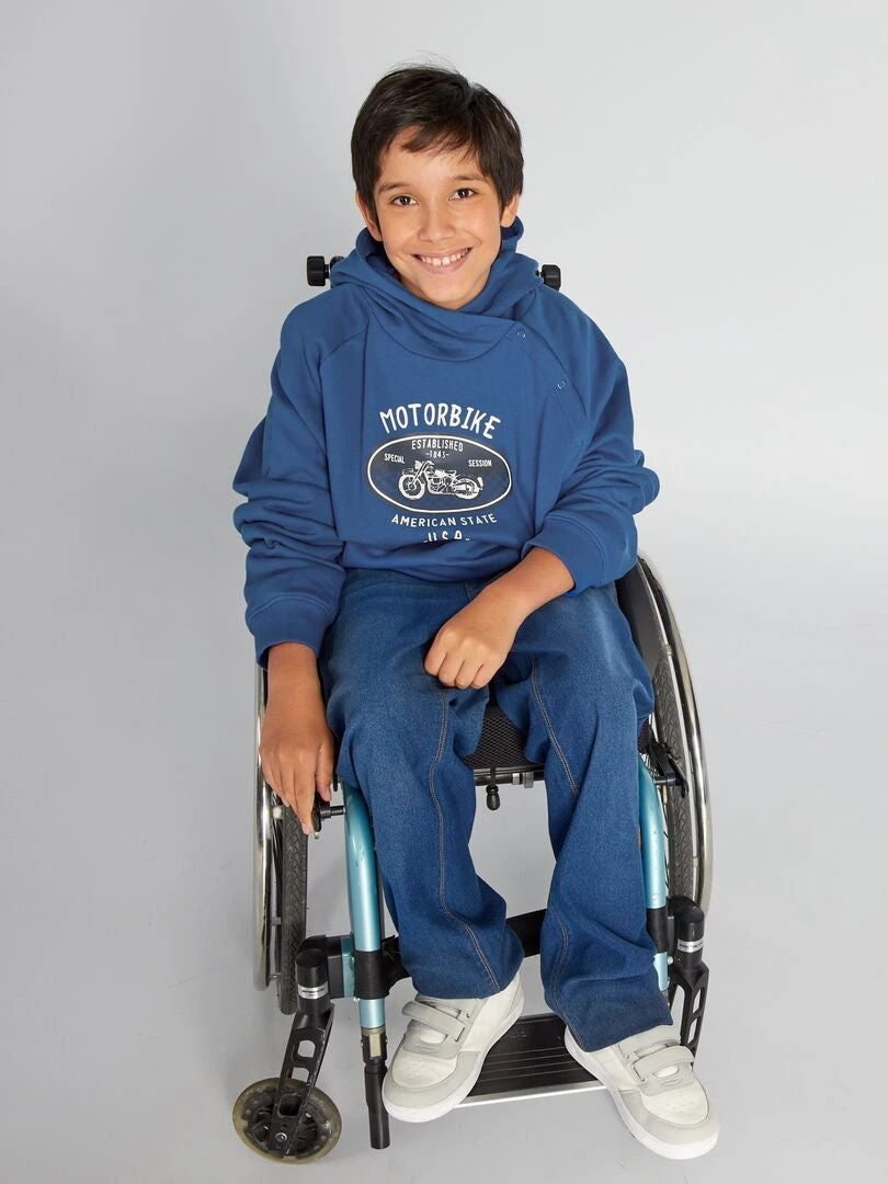 La collezione adaptive, disegnata per tutti e in particolare per le persone con disabilità, propone indumenti simpatici e adattati che facilitano la vestizione Con abbottonatura incrociata sul davanti per infilarlo più facilmente. Disponibile nelle taglie da 3 a 16 anni.