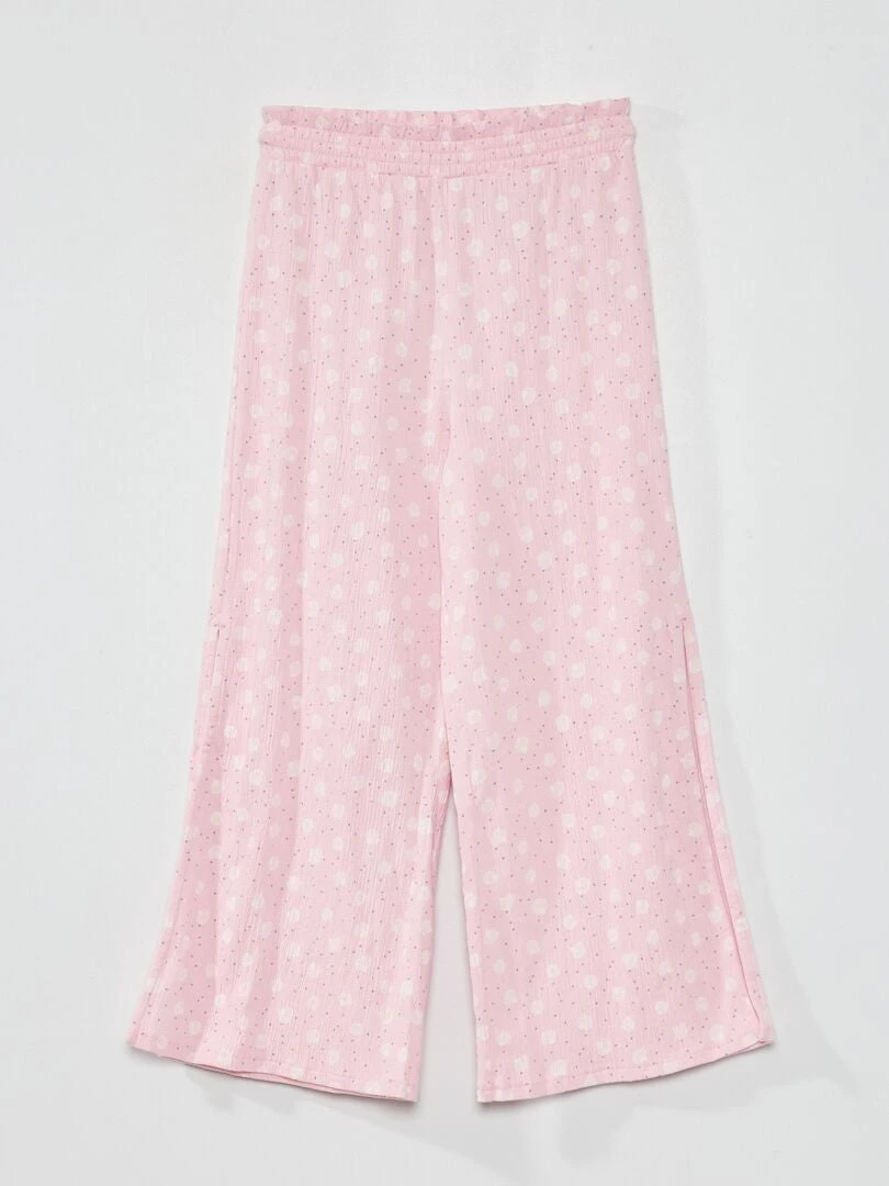 Questi pantaloni larghi sono piacevoli da indossare grazie al tessuto goffrato e alla stampa fantasia!