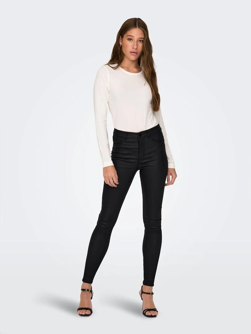 Adorerai questi jeans skinny spalmati che mettono in evidenza un nero intenso.