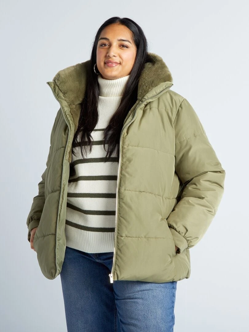 – Collo alto + collo foderato in maglia peluche