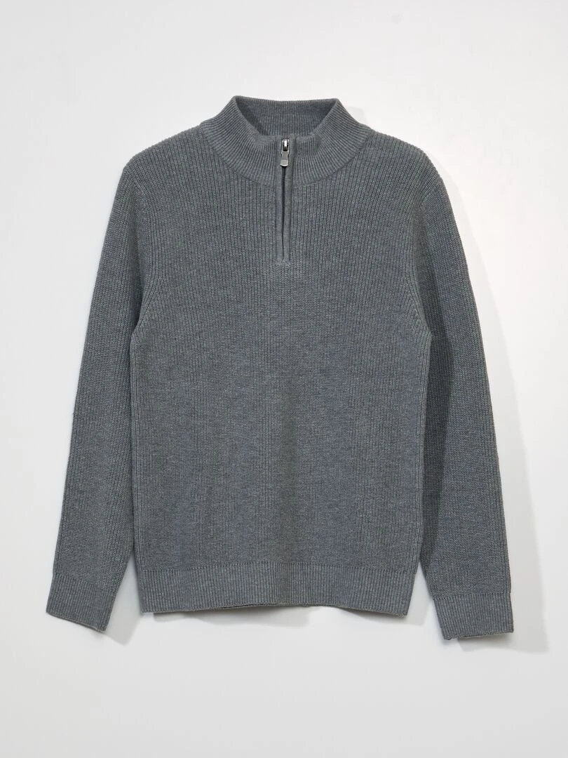 Pullover A Collo Alto Con Zip In Maglia A Coste