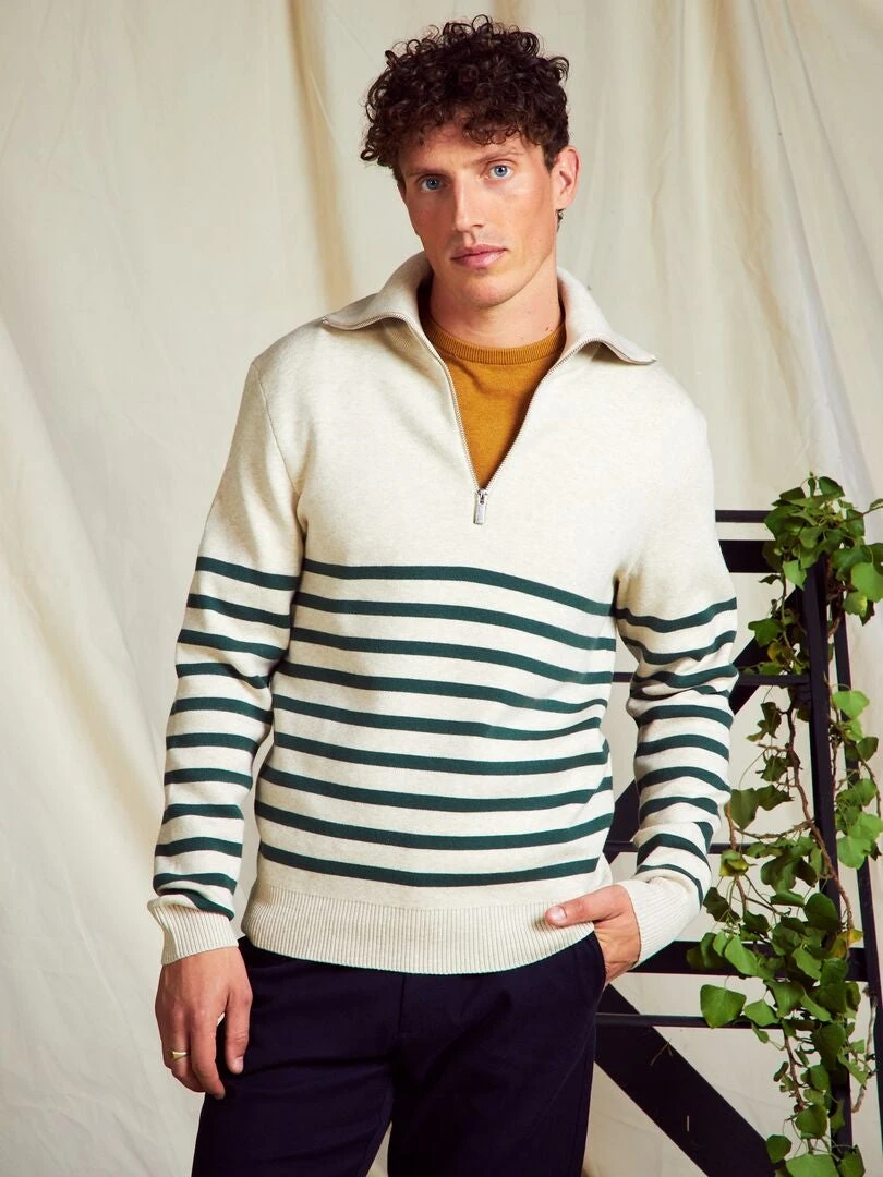 Pullover A Righe A Collo Alto Con Zip