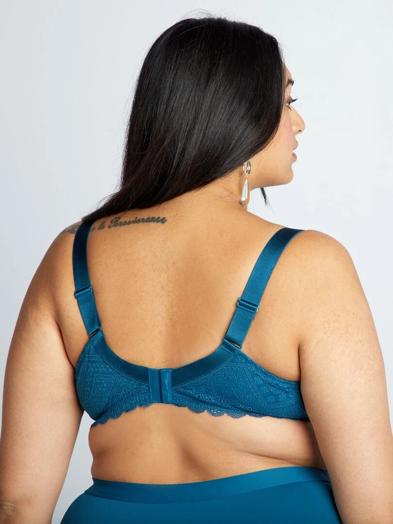 Questo reggiseno presenta un magnifico pizzo valorizzato da motivi a fiori e spigati, da sfoggiare sotto i tuoi look di tutti i giorni.
